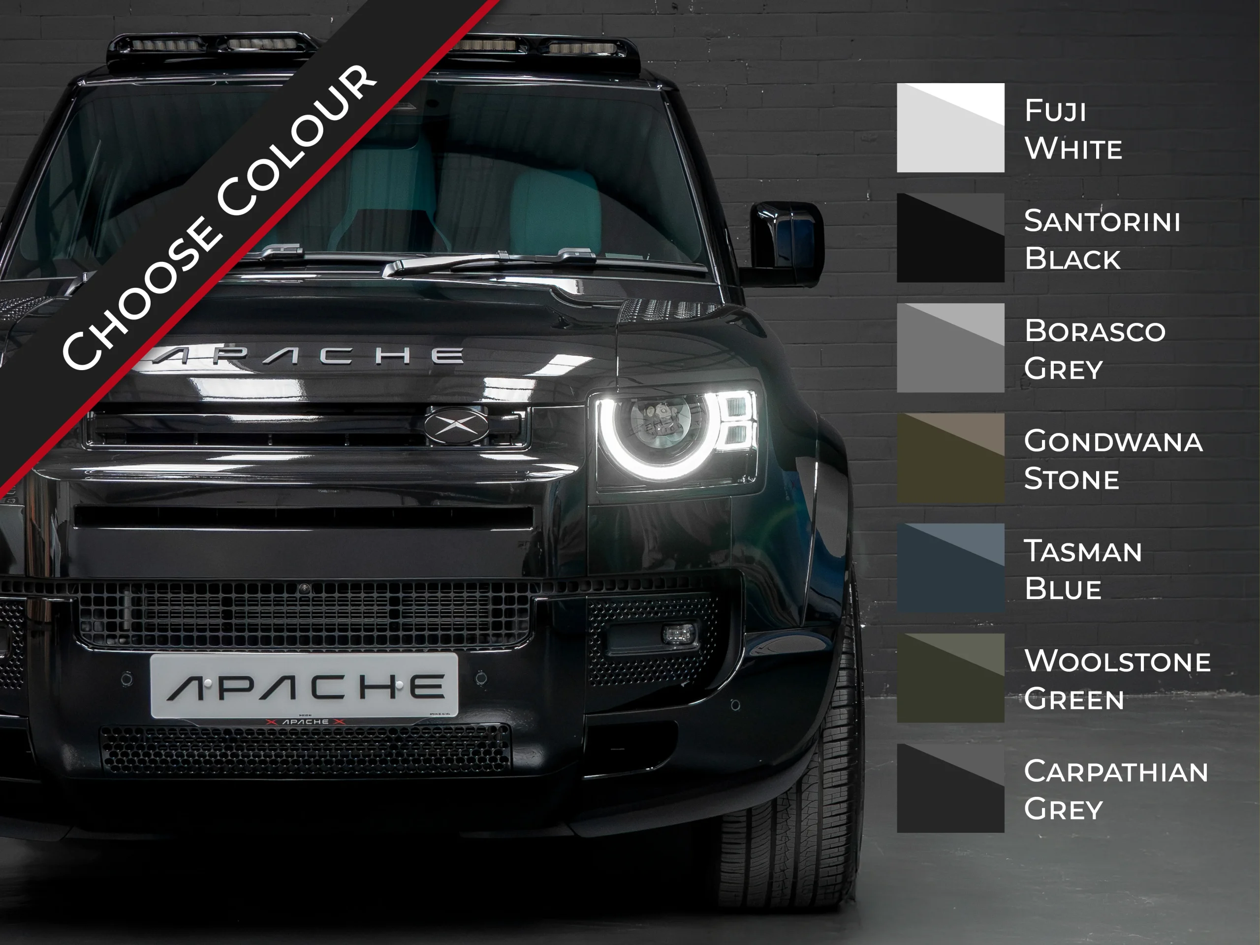 Design your own APACHE. Choose from a wide range of colours to make your dream car come true.