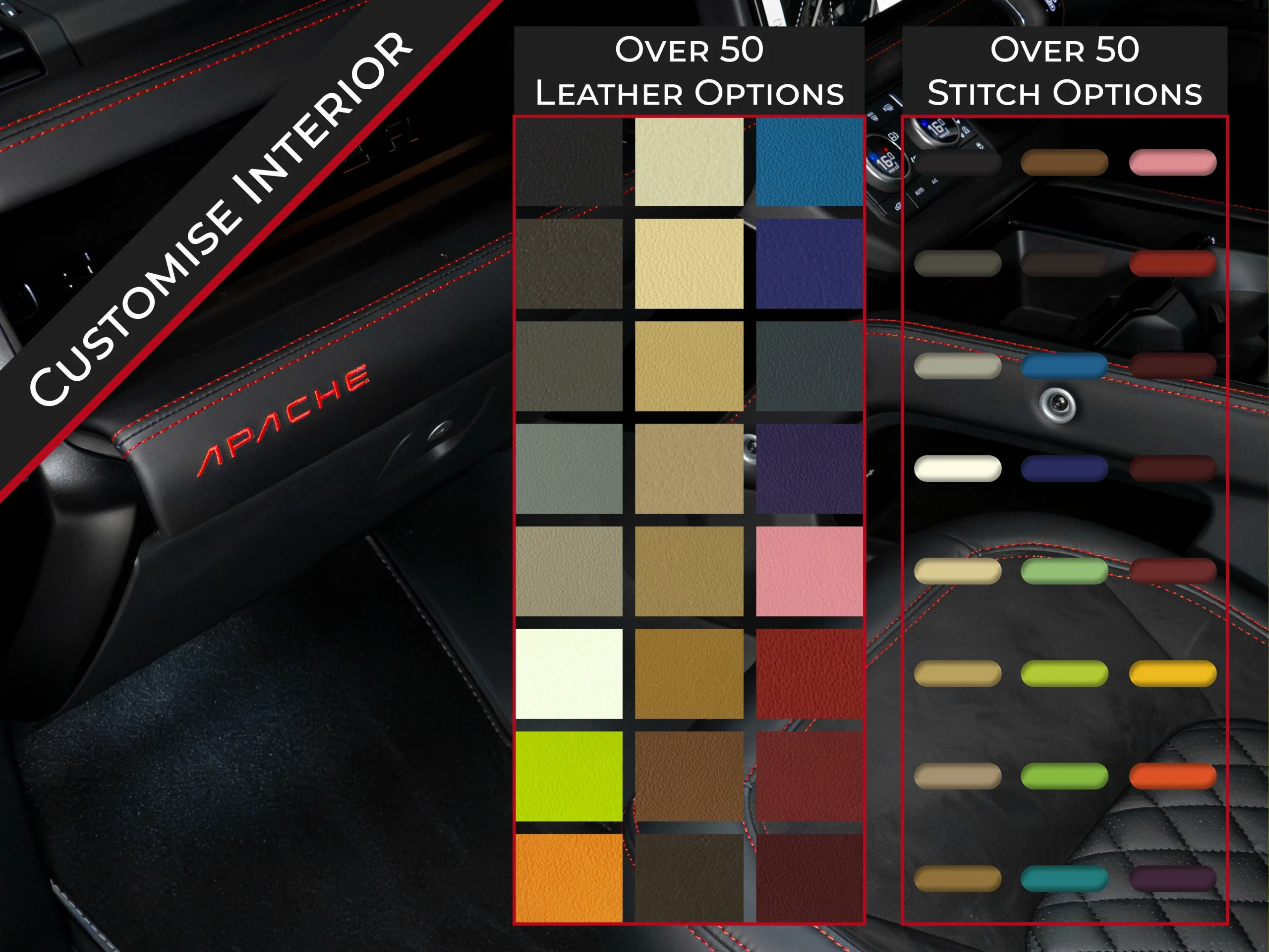 • Choice of over 50 colours for the Upper and Lower Dashboard Stitching