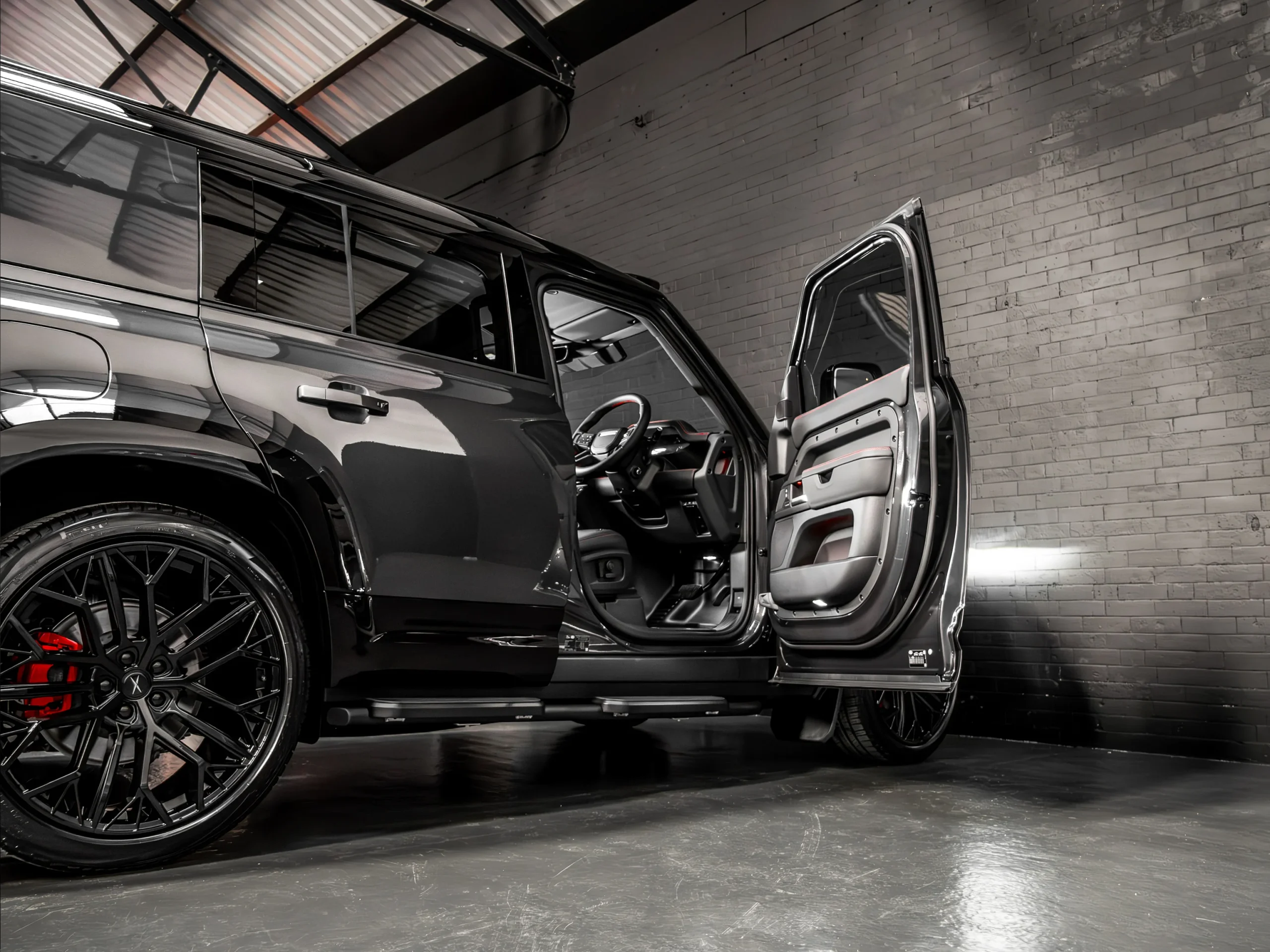 • Upper and Lower Dashboard re-trimmed in Black Nappa Leather with Red Stitch
