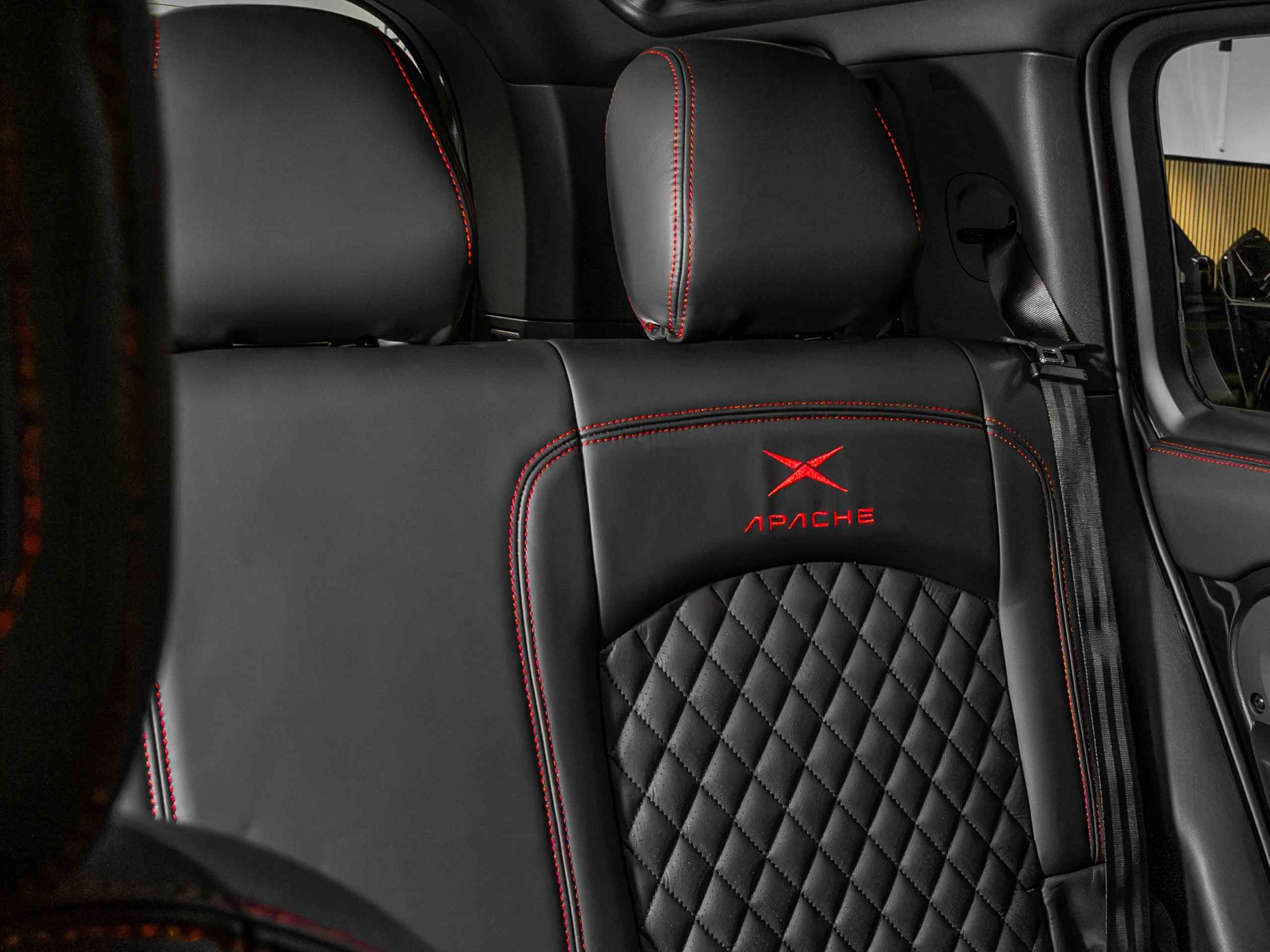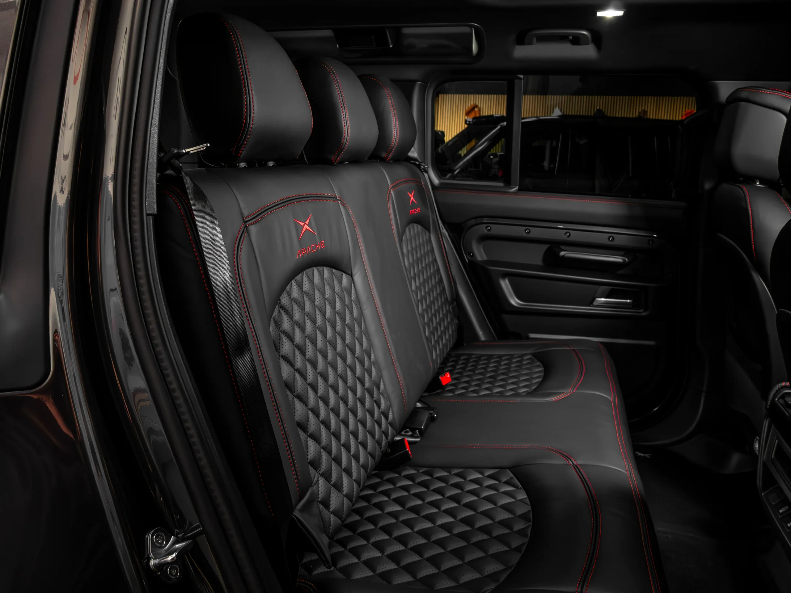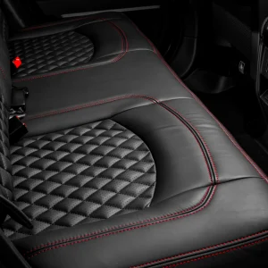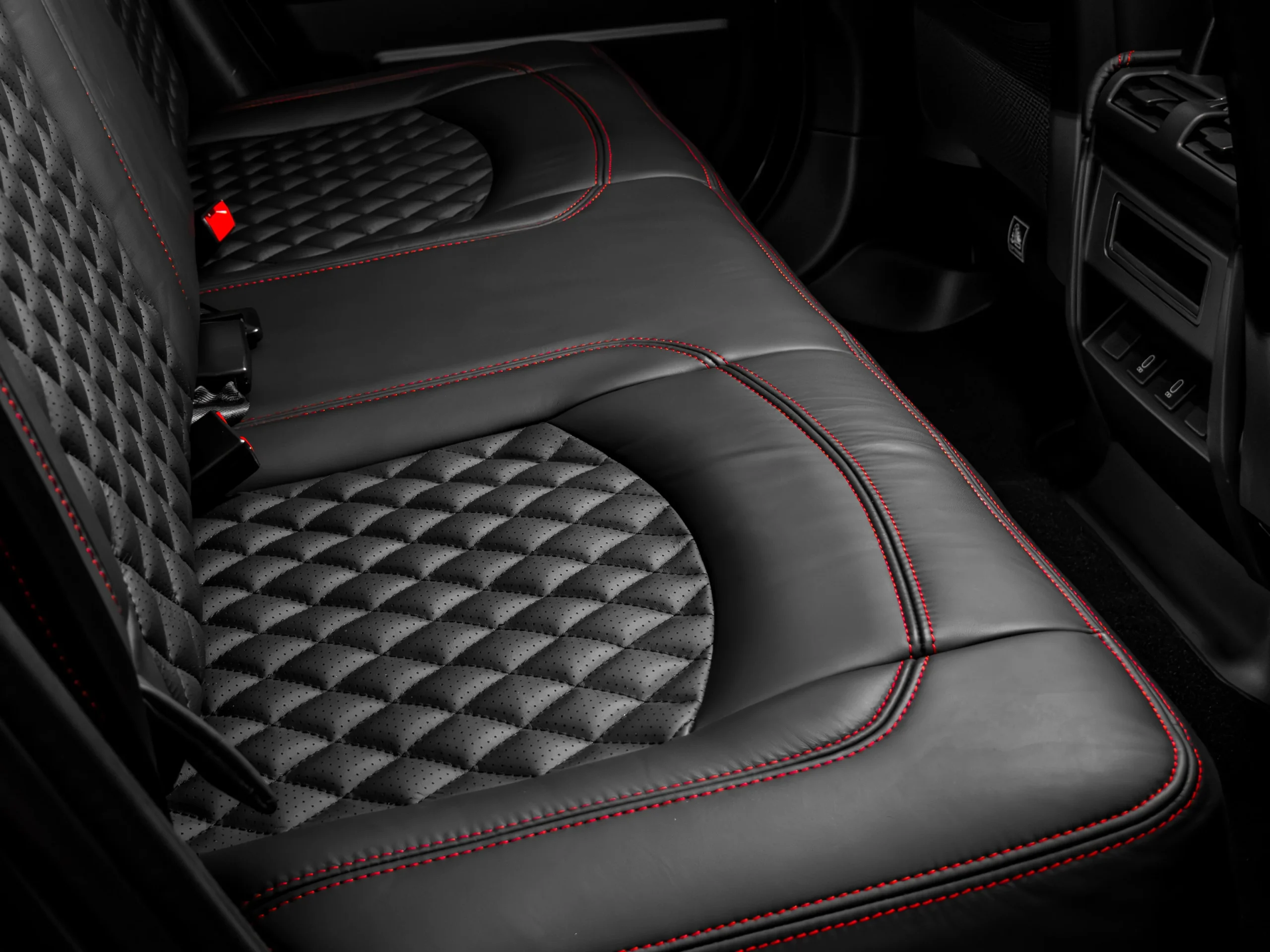 • Rear Seat Conversion in Black Nappa Leather and Black Alcantara with Red contrast Stitching