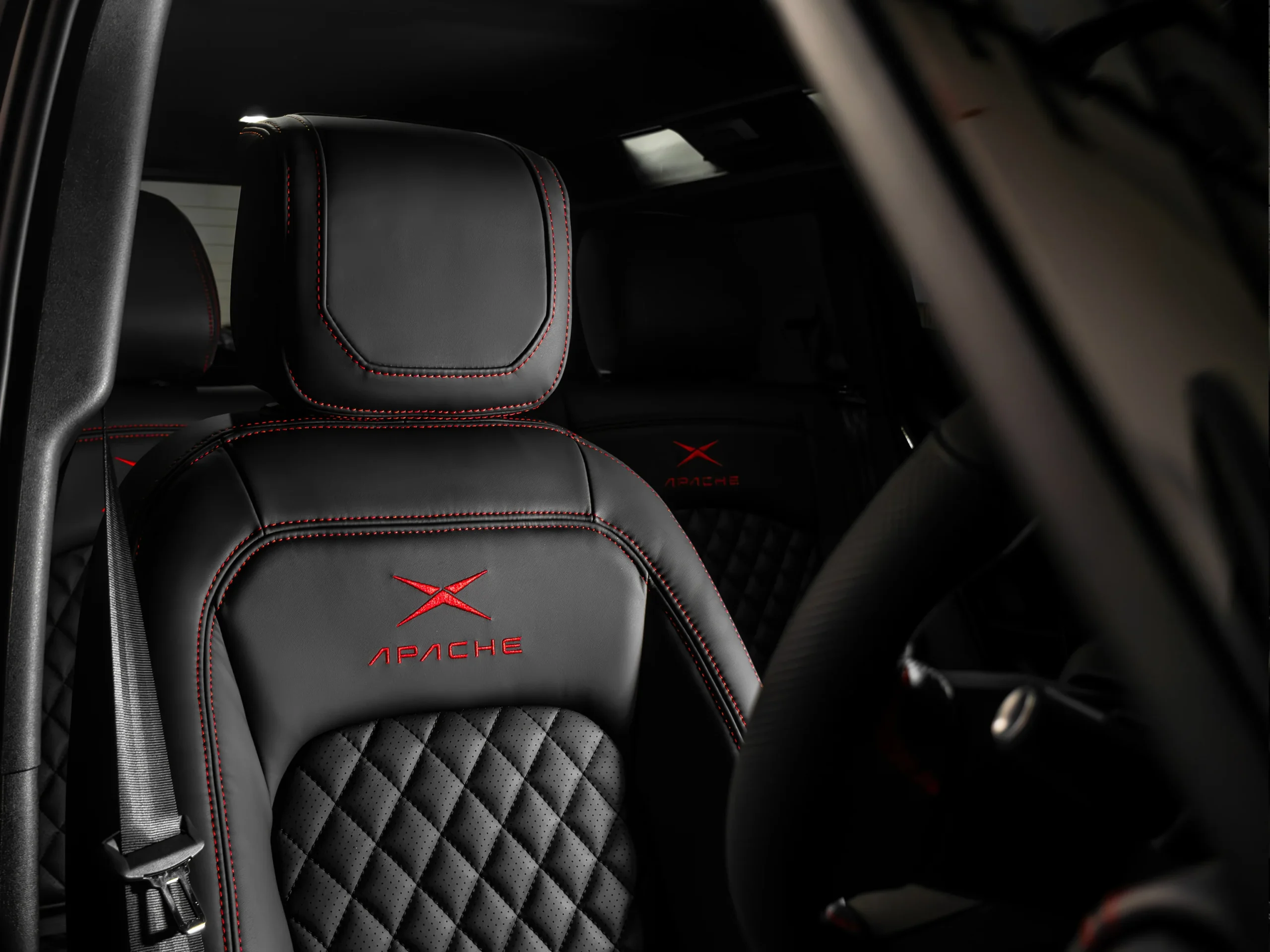 • Front Seats in Black Nappa Leather and Black Alcantara with Red contrast Stitching